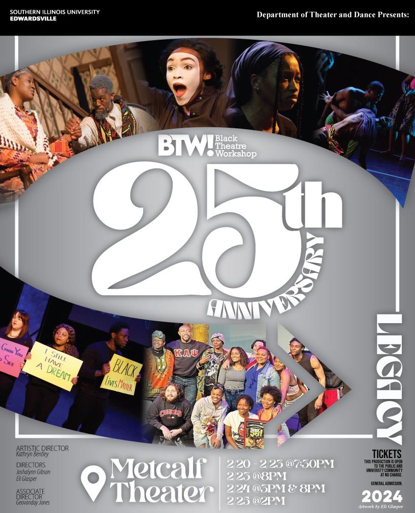 After two decades of leadership with Black Theatre Workshop, Associate Professor Kathryn Bentley leads the way on her final BTW before retiring in May 2024. She is joined for this 25th Anniversary celebration of "Legacy" by Theatre and Dance colleague, Asst. Professor Geovonday Jones, student directors Joshalyn Gibson and Eli Glasper, and a cast of esteemed alums and current students. Please join us as we celebrate 25 years of Black Theatre Workshop in this signature event of the College of Arts and Sciences. |